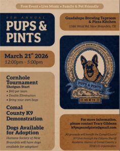 Club members promoted our club as well as showing support at this fundraising event for the Comal County Sheriffs K9 unit on 29 March. Our club is a sponsor of the Pups and Pints event this year. The event is a fundraiser with all proceeds to benefit the Comal County K9 Unit through the Citizens…