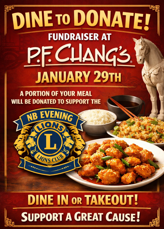 - Customers, our supporters, present a paper or digital copy of the flyer or mention NB Evening Lions Club to a server.